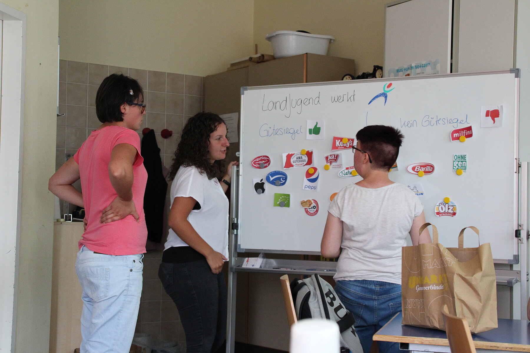 Da wir nun schon wussten, was gesund ist, welche Produkte aus Österreich kommen und dass es wichtig ist, regional zu kaufen, fehlte nur noch die Information, wie man nun die regionalen Lebensmittel im Geschäft erkennt. Hierzu besuchten wir gemeinsam einen Supermarkt und suchten zusammen nach verschiedensten Gütesiegeln.