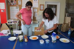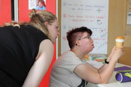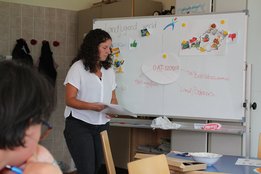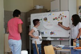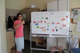 Im Anschluss wurde der Workshop „Gütesiegel & Lebensmittelkennzeichnung“ abgehalten. Auch dieses schwierige Thema konnte gut vermittelt werden. Das Highlight war das Abschlussspiel, wo das altbekannte Spiel „Erde, Feuer, Wasser, Luft“ in „Käfighaltung, Bodenhaltung, Freilandhaltung und Bio-Haltung“ umfunktioniert wurde.
