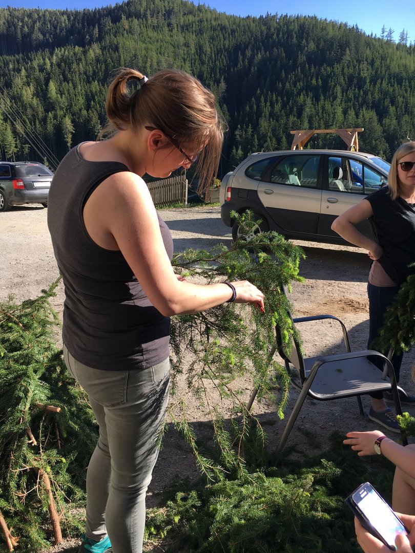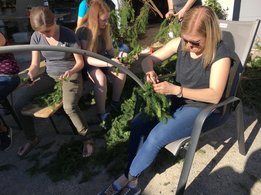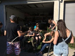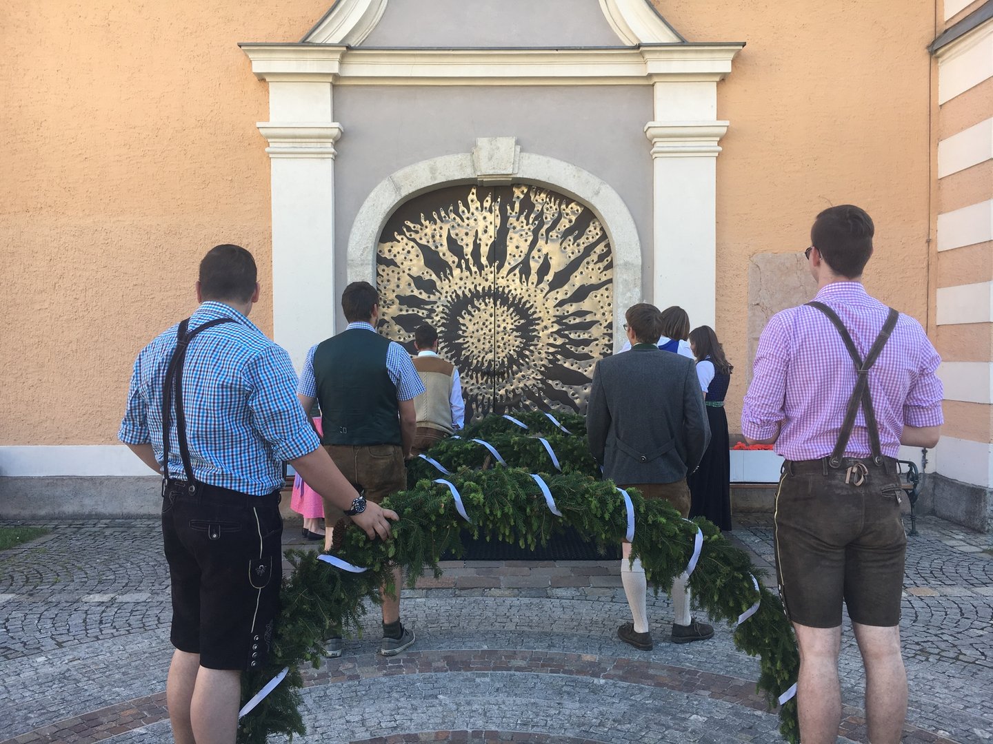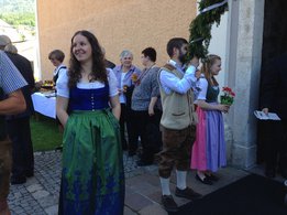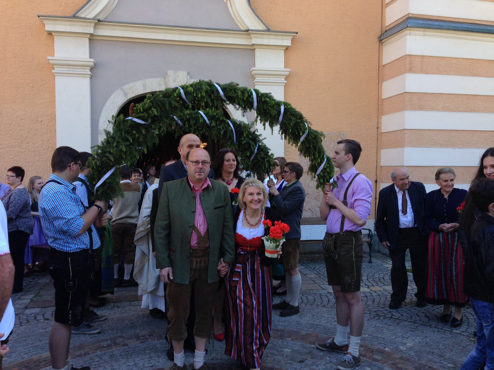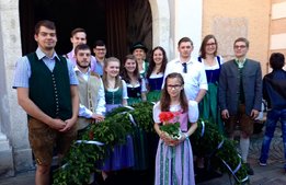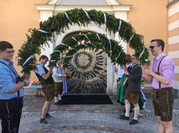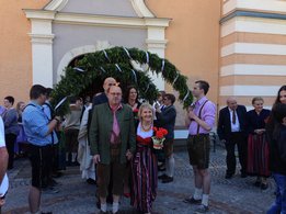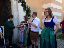 Dank vieler fleißiger Hände und einer g’schmackigen Jause ging am 27. Mai das Bögenbinden für die Ehejubiläumsmesse schnell über die Bühne. Am Tag darauf durften wir dann vor der Stadtpfarrkirche Mürzzuschlag für die Ehepaare Spalier stehen und den Damen eine kleine Blume überreichen.