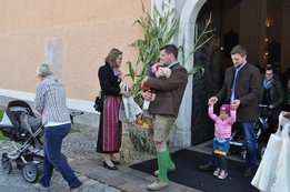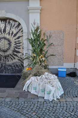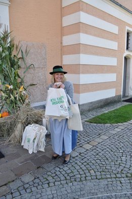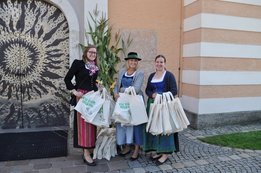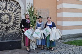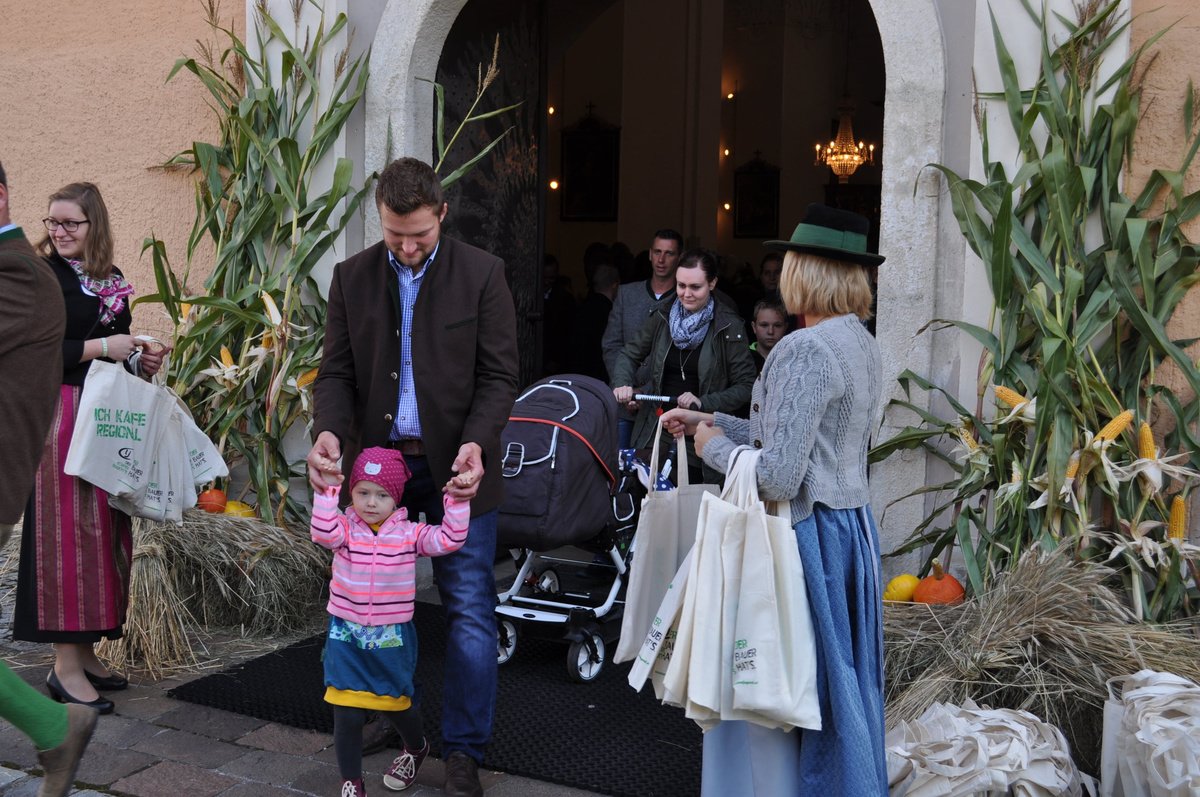 Im Rahmen der Lebensmittelaktion "Der Körper braucht's - der Bauer hat's" wurden nach dem Gottesdienst 80 Stoffsackerl mit Infomaterial und selbst gemachtem Naturjoghurt ausgeteilt.
