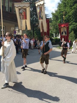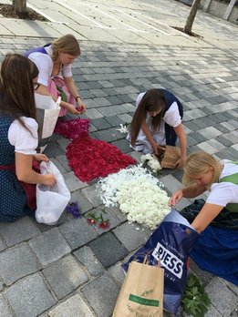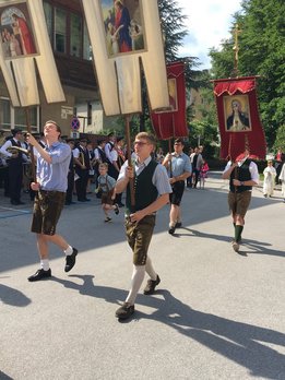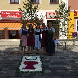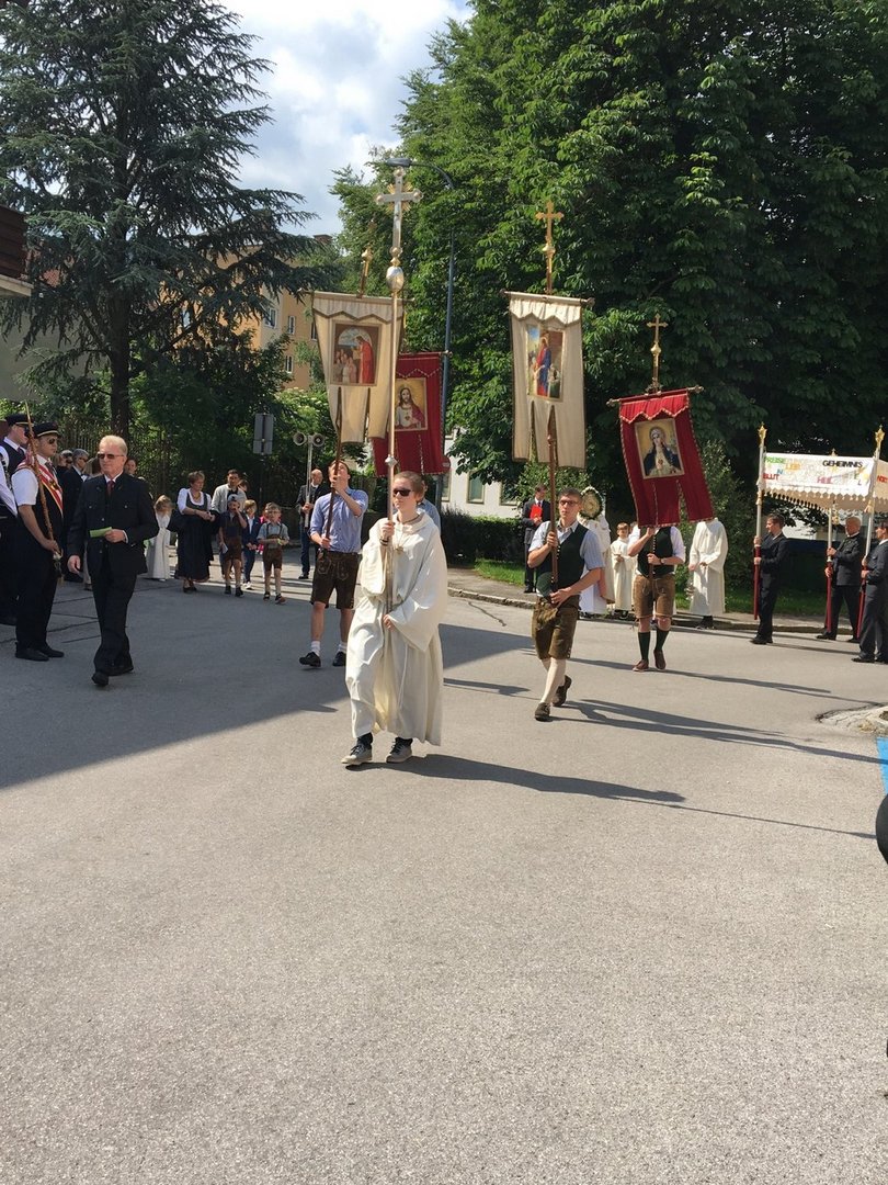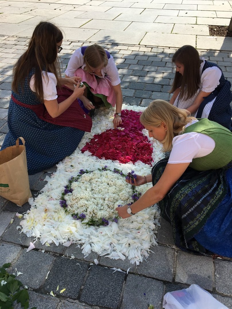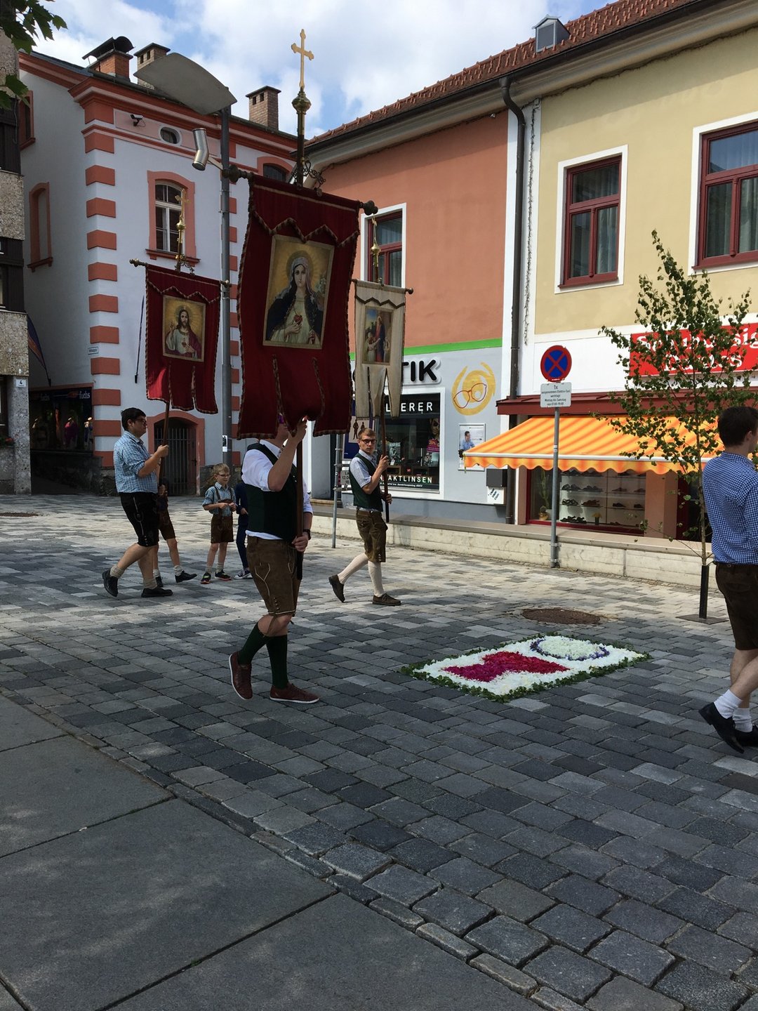 Unsere motivierten Mitglieder zauberten auch heuer wieder einen wunderschönen Blütenteppich, der an der letzten Station der Fronleichnams-Prozession bewundert werden konnte. Die Burschen waren traditionsgemäß als Fahnenträger dabei.