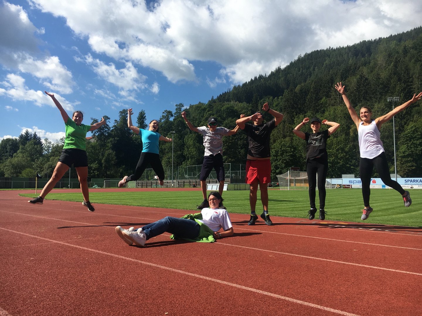 In einer Woche setzten wir sogar noch einen drauf und veranstalteten nach dem Lauftraining noch ein Workout, das uns alle ziemlich ins Schwitzen brachte!