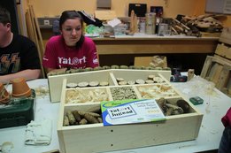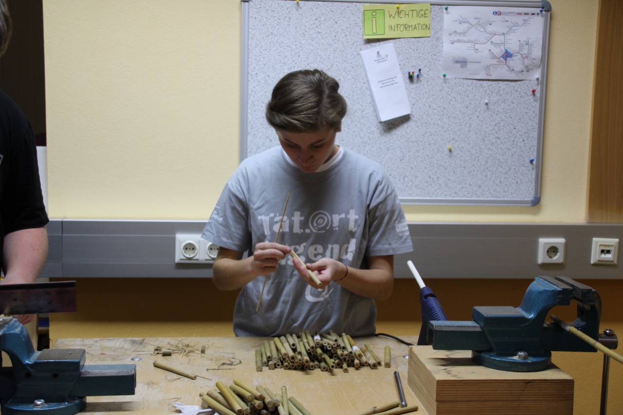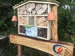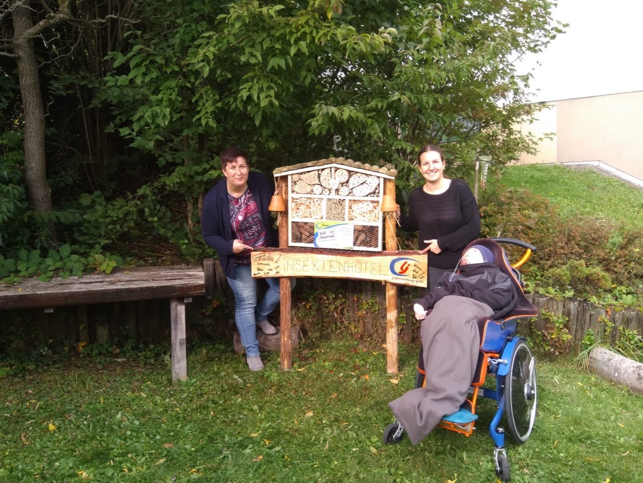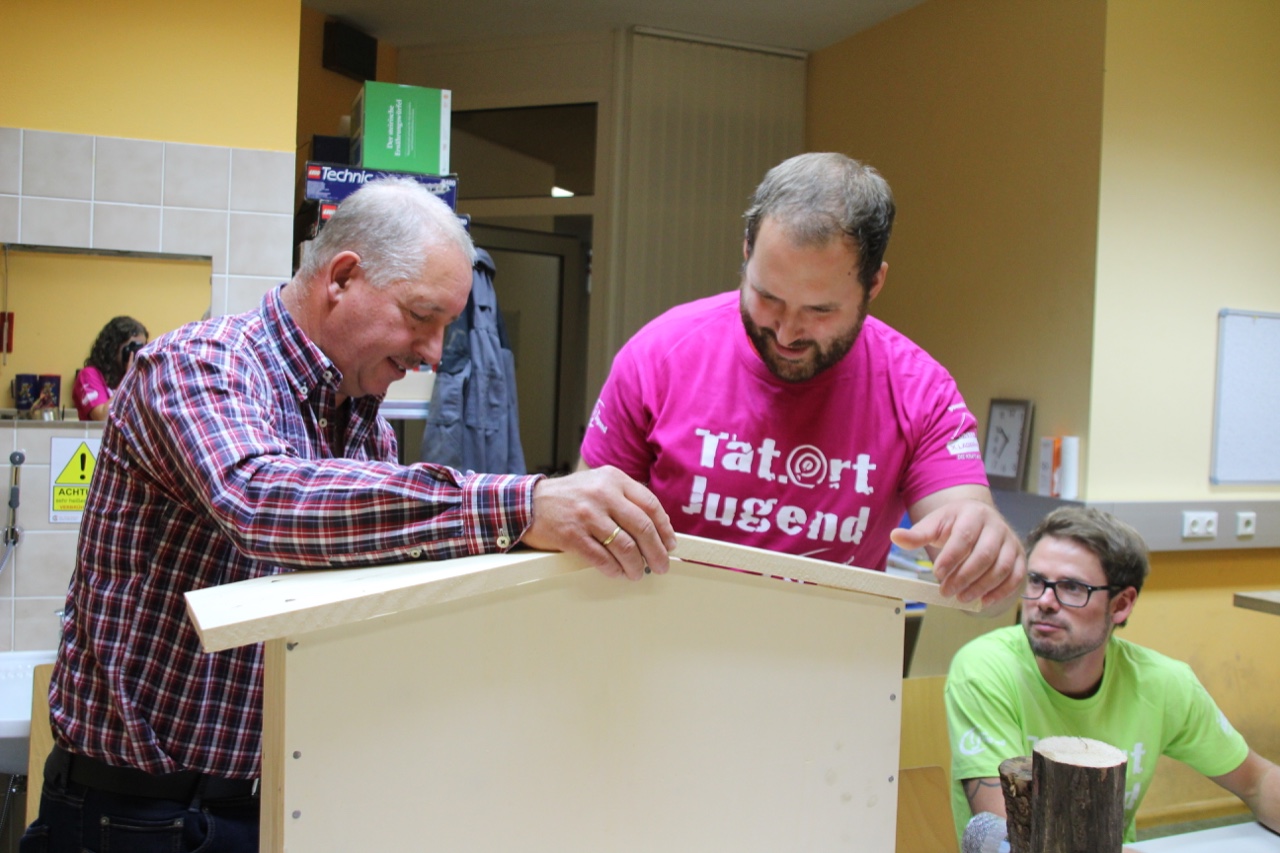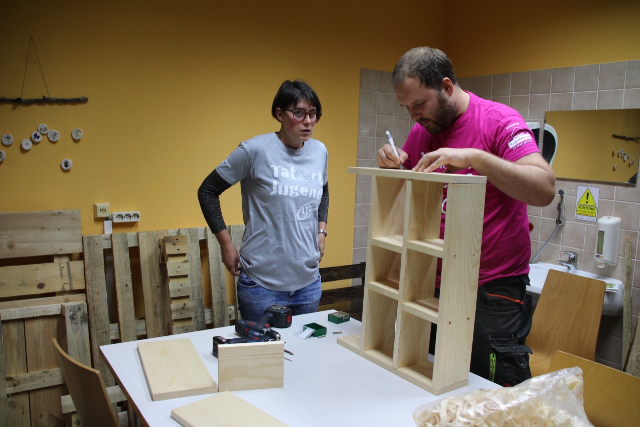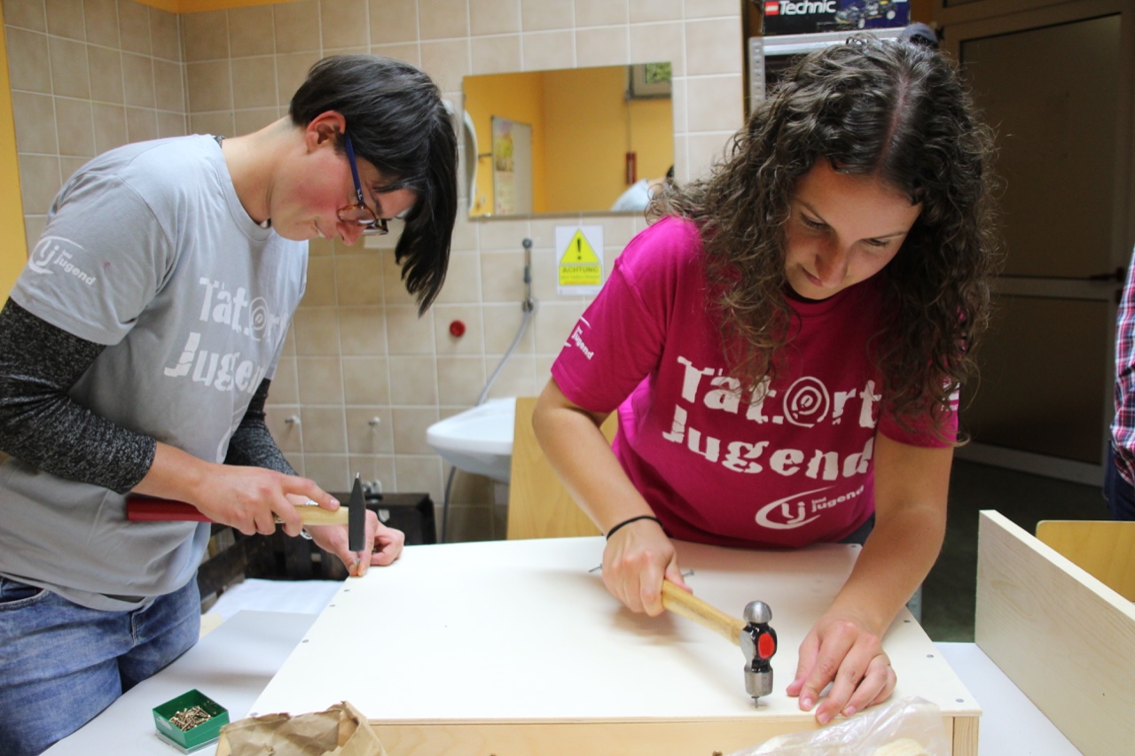 Ein voller Erfolg! Nicht nur für zahlreiche Insekten, sondern auch für uns als Ortsgruppe Mürzzuschlag-Ganz! Am 26. September besuchten wir im Rahmen des Projektes „Biotopia – fliegen, flattern, fördern“ die Einrichtung Jugend am Werk in Mürzzuschlag und bauten zusammen mit den Jugendlichen aus der TaB-Gruppe ein Insektenhotel. Sowohl die Burschen und Mädels als auch die Betreuer erwarteten uns schon voller Vorfreude und empfingen uns aufs Herzlichste. Wir stellten uns als Landjugend vor und erklärten den Jugendlichen kurz, was wir heute gemeinsam bauen werden. Als kleine Stärkung vorweg gab’s eine Kaffee- und Kuchenpause, wo wir mit den Teilnehmern ins Gespräch kamen und eine lockere Atmosphäre entstand. Als Einstieg durften wir zudem einen Experten in unserer Mitte begrüßen. Ein Imker aus unserer Region schaute vorbei und erzählte uns Wissenswertes über Wildbienen und den Bau eines Insektenhotels. Gleich im Anschluss legten wir voll motiviert los und begannen das Gerüst des Insektenhotels zusammenzuschrauben. Einige Mädels von Jugend am Werk brachten sich sofort ein und übernahmen mit Hilfestellungen unsererseits das Bohren und Schrauben. Inzwischen unterstützen die anderen Landjugendmitglieder den Rest der Jugendlichen dabei, Holz zu durchsägen, Bambusstäbe zurecht zu schneiden und Löcher zu bohren. Wir hatten große Freude daran, den Teilnehmern etwas Neues zu zeigen und ihnen verschiedenste Tätigkeiten beizubringen. Viele der Burschen und Mädels hatten bislang keinerlei Erfahrungen in der Holzarbeit bzw. wussten nicht wie man Werkzeuge benutzt. Aufgrund dieses Projektes lernten die Jugendlichen nicht nur Wichtiges beim praktischen Arbeiten, sondern zudem wurden ihre motorischen Fähigkeiten gestärkt. Wir konnten miterleben, wie die Jugendlichen, bei dem was sie taten, voll aufblühten und jede Menge Spaß am Bohren, Sägen und Hämmern hatten. Sie waren aktiv, lachten herzlich und brachten sich von selber ein um eine Aufgabe zu übernehmen. Als das Gerüst fertig war, ging’s ans Befüllen des Insektenhotels. Wir hatten Hartholz, Bambusstäbe, Forsythien und Zäpfen als Material zur Verfügung. Als kleine Überraschung brachten wir den Jugendlichen noch ein selbstgebautes Holzschild mit der Aufschrift „Insektenhotel“ mit, auf dem jeder von ihnen unterschreiben durfte. Als Abschluss wurde das Insektenhotel im Garten von Jugend am Werk aufgestellt und noch mit einem kleinen Herz ausgestattet. Viele freie Zimmer in unserem Insektenhotel sind geschaffen worden, die bereit sind belegt zu werden!