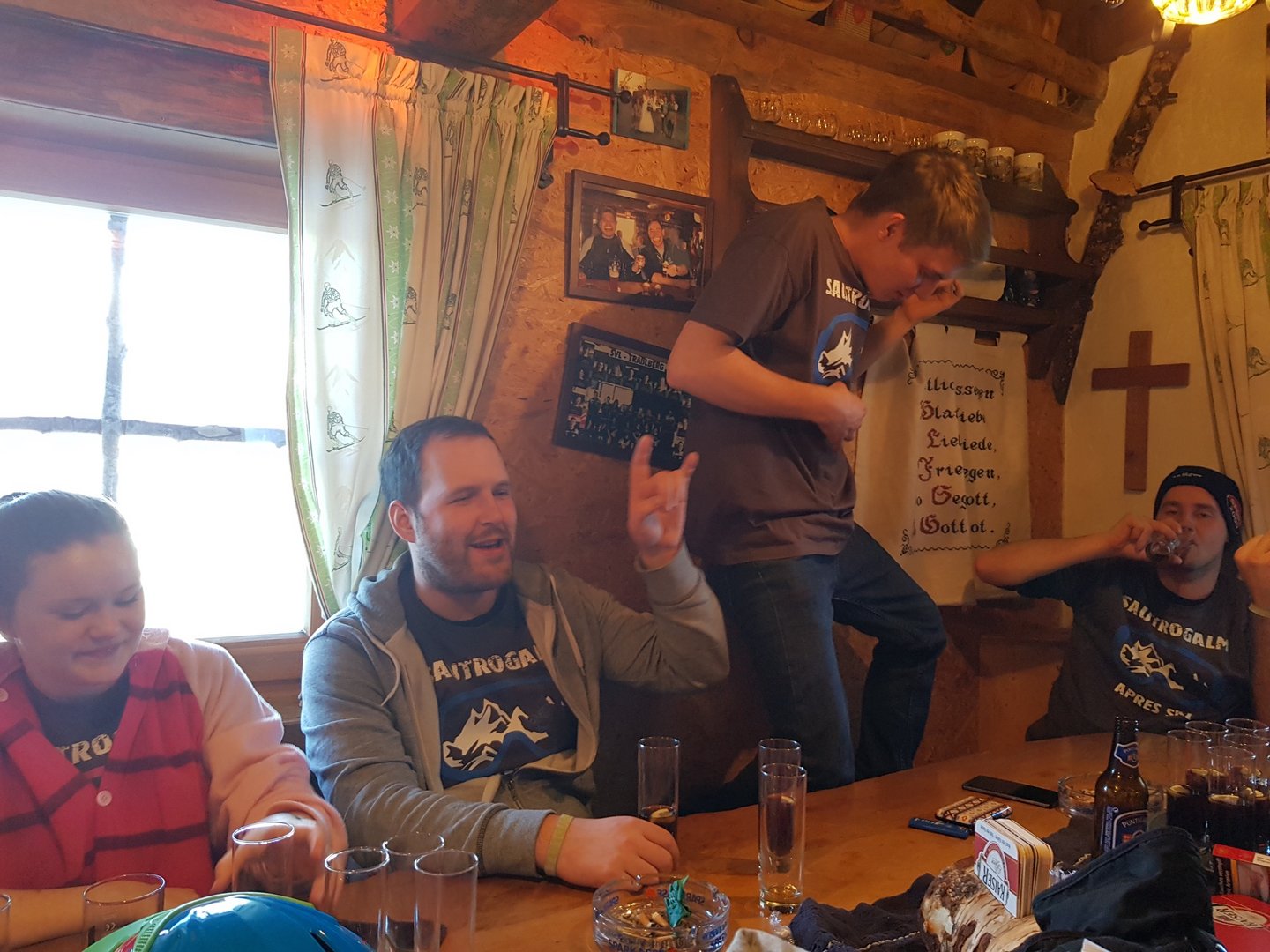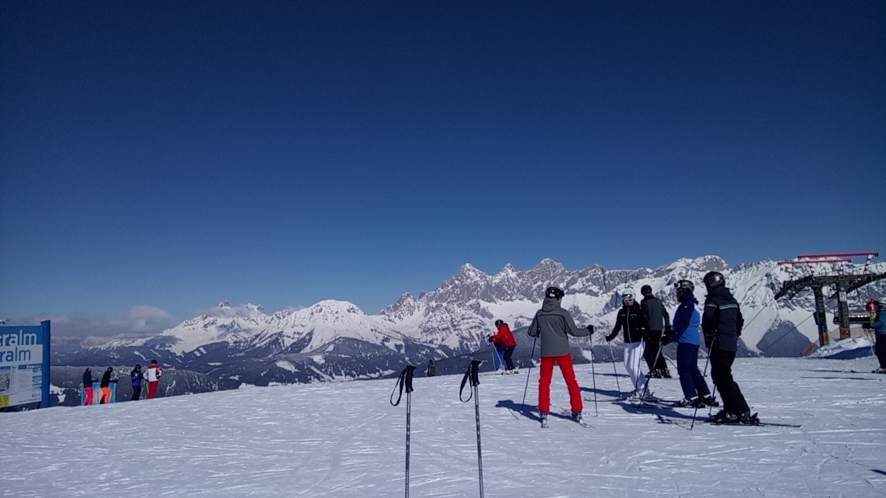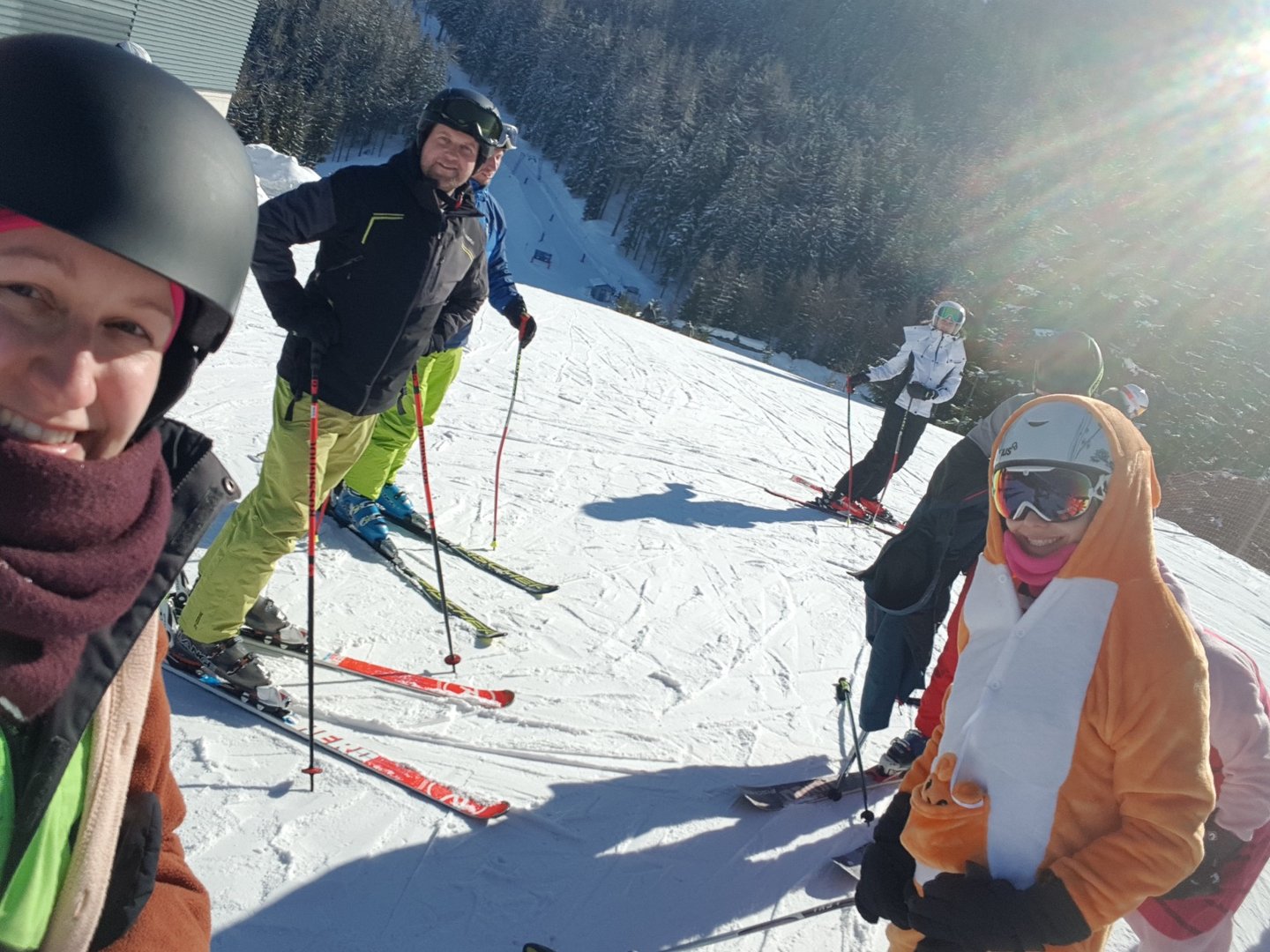 Am 24./25. Februar hieß es für 13 Mitglieder unserer Ortsgruppe „Auf die Bretter, fertig, LOS!“ Bereits um 6 Uhr in der Früh standen wir in den Startlöchern zum diesjährigen Skiausflug. Nach getaner Busrede und einem ausgiebigen, Schinken + Ei- lastigen Frühstück in Wörschach setzten wir unsere Reise fort, um letztendlich das Ziel „Dachstein- West“ zu erreichen. Da das Wetter zu wünschen übrig ließ, entschieden sich einige von uns gleich für die „Hüttengaudi“, während der Rest, trotz schlechten Sichtverhältnissen, die Piste eroberte. Am Abend bezogen wir unser Quartier „Die goldene Traube“, die nicht nur mit ihren Zimmern und dem Abendessen begeisterte. Auch die dort vorhandene Musikbox ließ das Herz von uns allen höherschlagen. Die private Vorhausparty war also vorauszusehen und unvermeidbar. Am Sonntag war die Wetterfee auf unserer Seite und so machten wir uns bei strahlendem Sonnenschein auf den Weg nach Schladming, um dort das perfekte Wetter auf den Skiern beziehungsweise Boards zu genießen. Danach krönten wir diesen perfekten Skitag mit stilvollem Après- Ski bei der Familie Sieder auf der Sautrogalm. Zu später Stunde traten wir mit neu ergatterten „Sautrogalm“- T-Shirts die Heimreise an. Zum Schluss bleibt nur noch zu sagen: Es war wunderschön!