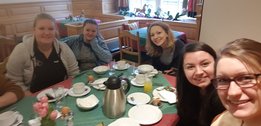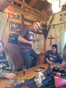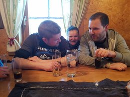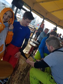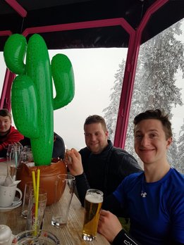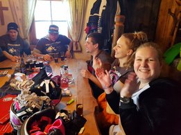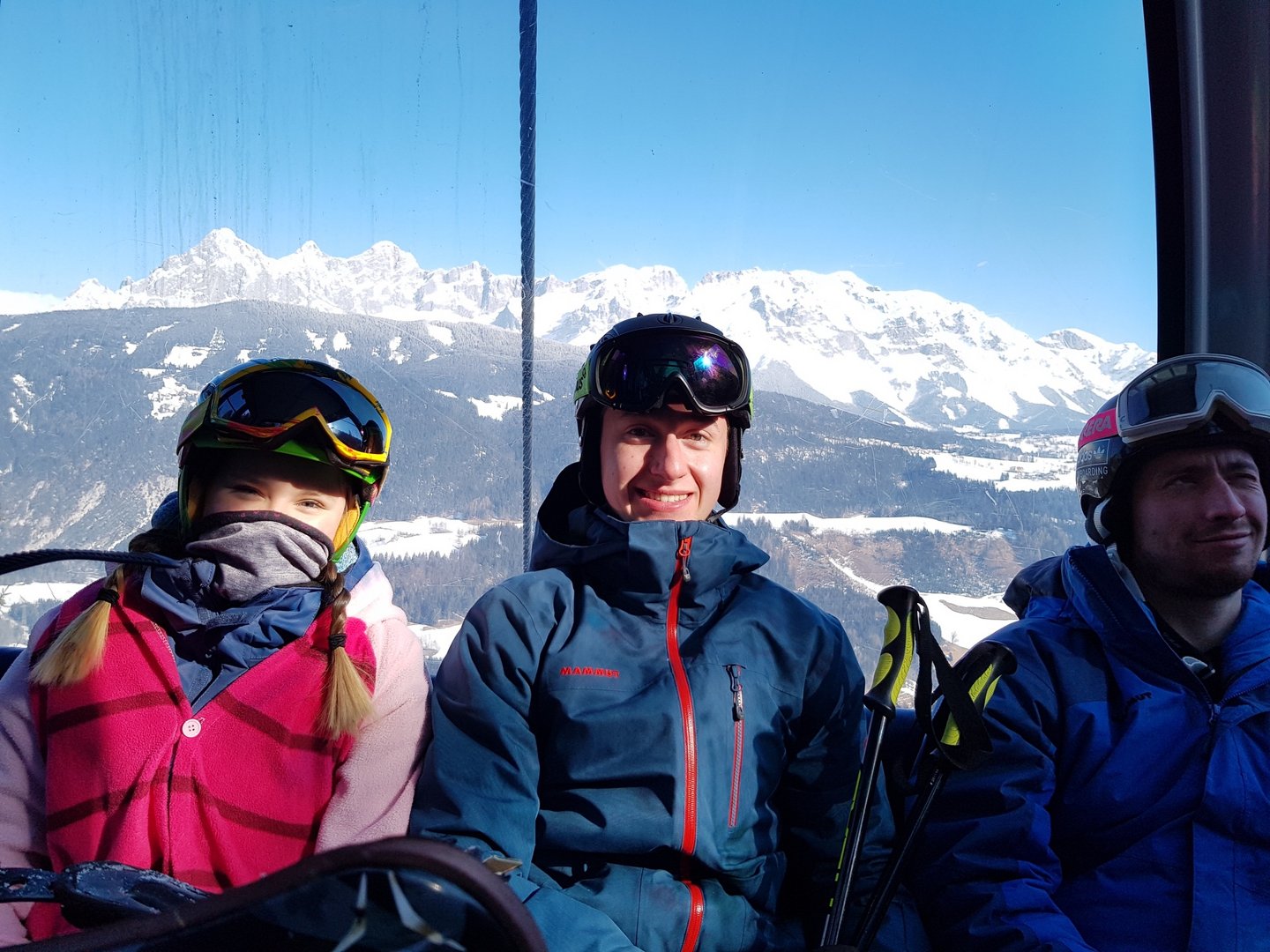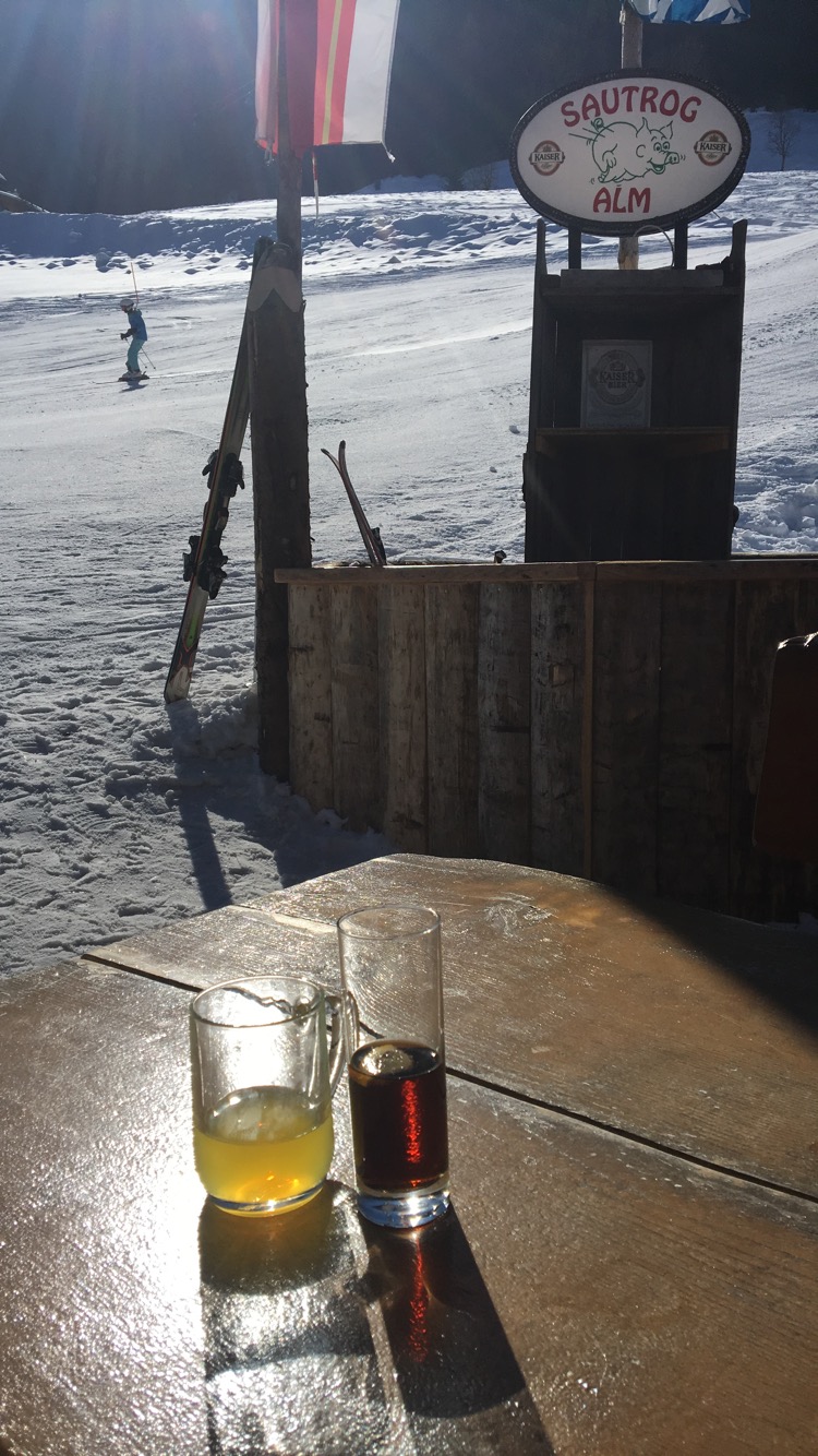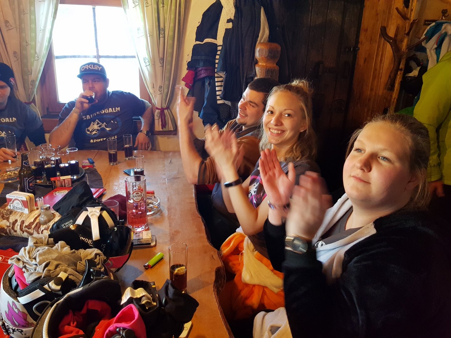 Am 24./25. Februar hieß es für 13 Mitglieder unserer Ortsgruppe „Auf die Bretter, fertig, LOS!“ Bereits um 6 Uhr in der Früh standen wir in den Startlöchern zum diesjährigen Skiausflug. Nach getaner Busrede und einem ausgiebigen, Schinken + Ei- lastigen Frühstück in Wörschach setzten wir unsere Reise fort, um letztendlich das Ziel „Dachstein- West“ zu erreichen. Da das Wetter zu wünschen übrig ließ, entschieden sich einige von uns gleich für die „Hüttengaudi“, während der Rest, trotz schlechten Sichtverhältnissen, die Piste eroberte. Am Abend bezogen wir unser Quartier „Die goldene Traube“, die nicht nur mit ihren Zimmern und dem Abendessen begeisterte. Auch die dort vorhandene Musikbox ließ das Herz von uns allen höherschlagen. Die private Vorhausparty war also vorauszusehen und unvermeidbar. Am Sonntag war die Wetterfee auf unserer Seite und so machten wir uns bei strahlendem Sonnenschein auf den Weg nach Schladming, um dort das perfekte Wetter auf den Skiern beziehungsweise Boards zu genießen. Danach krönten wir diesen perfekten Skitag mit stilvollem Après- Ski bei der Familie Sieder auf der Sautrogalm. Zu später Stunde traten wir mit neu ergatterten „Sautrogalm“- T-Shirts die Heimreise an. Zum Schluss bleibt nur noch zu sagen: Es war wunderschön!