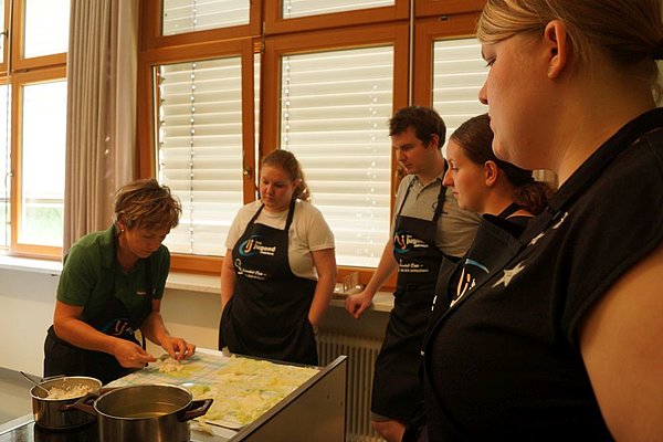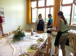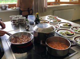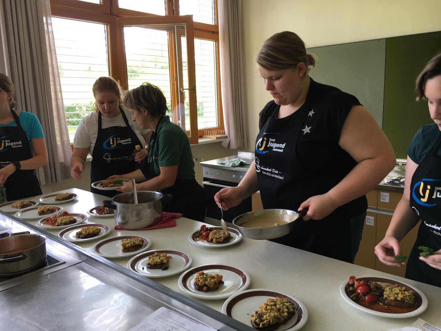 Die Seminarbäuerin Evi Krenn führte uns durch den Tag und brachte uns mit ihrer herzlichen und motivierenden Art das Kochen näher. Als Grundlage für die Gerichte dienten drei besondere steirische Lebensmittel: Das Rindfleisch, der Kürbis und die Käferbohne. Aus diesen und noch vielen weiteren regionalen Produkten zauberten wir ein 4-Gänge Menü: