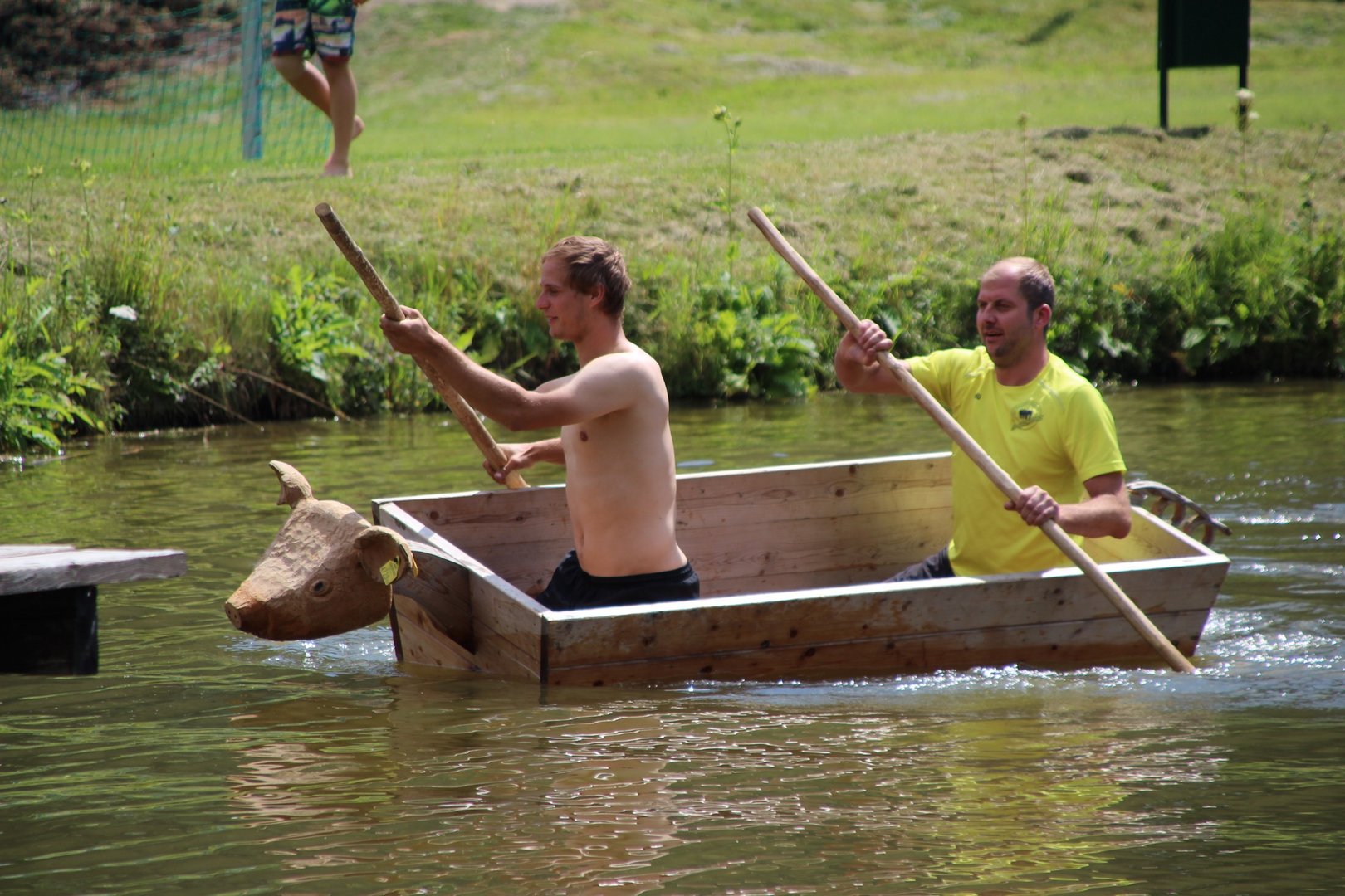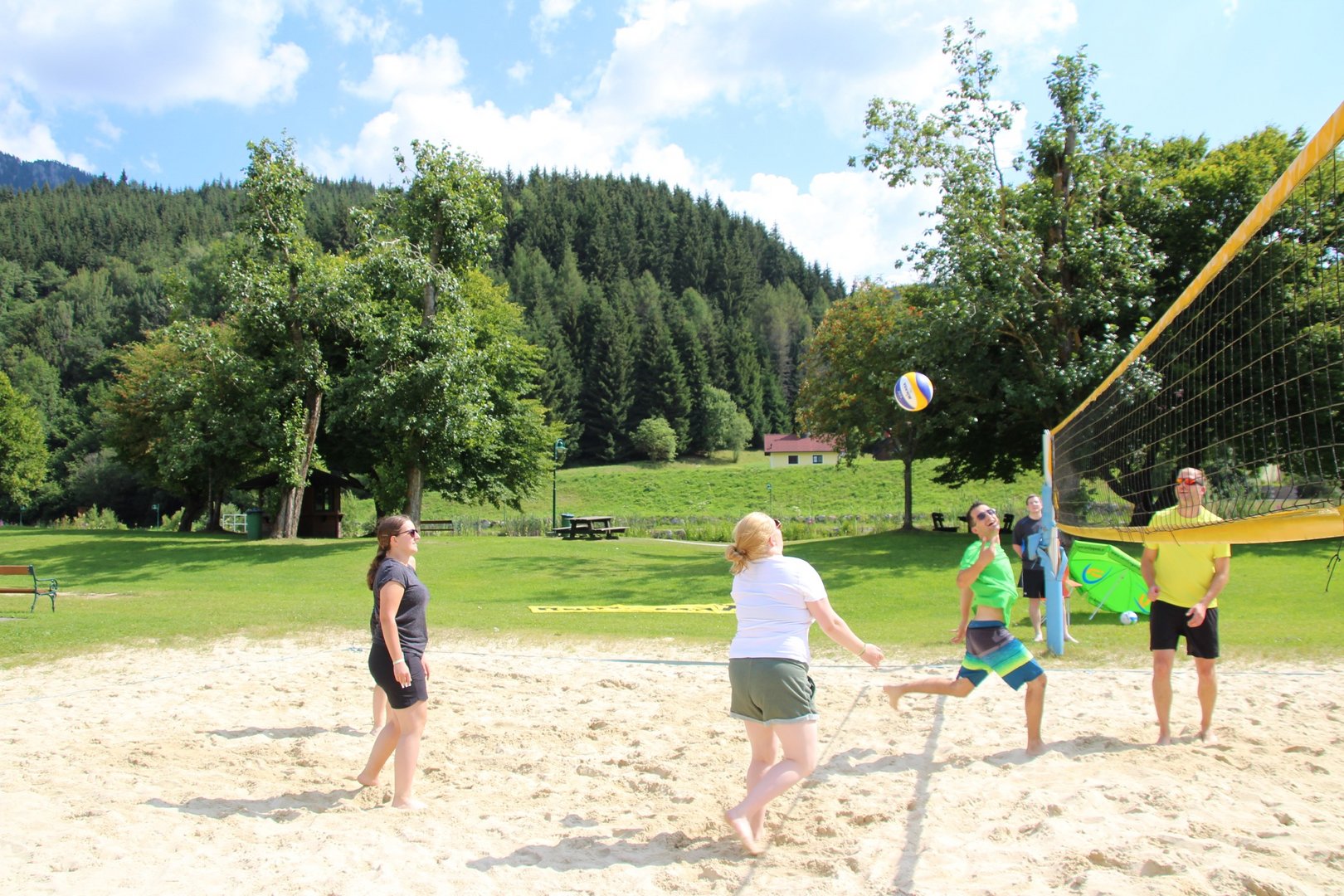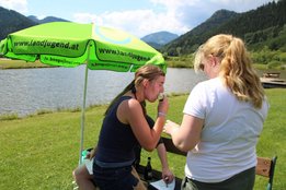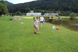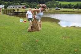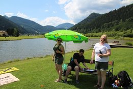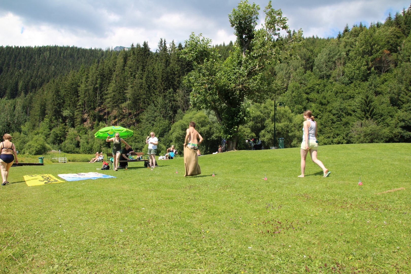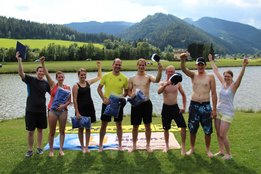 Bei strahlendem Sonnenschein fand am 14. Juli das Beachvolleyballturnier und die Sautrogregatta beim Teichwirt Urani statt. Am Vormittag ging’s schon los mit dem Volleyballmatch, wo fünf Teams aus den verschiedenen Ortsgruppen gegeneinander antraten. Hier konnte sich am Ende die Mannschaft aus Krieglach durchsetzen und holte sich vor der Ortsgruppe Stanz und dem Team aus Langenwang die Gold-Medaille! Die Mädels aus unserer Ortsgruppe konnten gemeinsam mit zwei Mitgliedern aus Langenwang den 4. Rang belegen! Im Anschluss an eine kleine Mittagspause starteten die Teilnehmer gestärkt zur Sautrogregatta. Die Challenge bestand dieses Jahr darin, den Urani-Teich einmal zu durchqueren und auf der gegenüberliegenden Seite einige Aufgaben zu lösen. Viele Mitglieder machten eine super Figur beim Sackhüpfen durch einen Parcours und auch bei den „Zahlenbildern“ legten alle eine tolle Performance hin! Zur Belohnung gab’s dann für jeden ein Stamperl Kernöl! Nach diesen Aufgaben mussten die Teilnehmer wieder zurück zum Ufer paddeln, wo die Zeit gestoppt wurde. Am schnellsten konnten Jakob Karner und Hubert Riegler aus der Ortsgruppe Krieglach den Parcours meistern und holten sich den Sieg! Den zweiten Platz belegte die Mädels aus der Ortsgruppe Langenwang und dritter wurden Christian Schöggl und Christian Budel! Herzlichen Glückwunsch und danke an alle, die dabei waren! Es war wieder ein lustiger, erlebnisreicher Tag mit euch!
