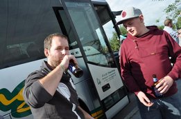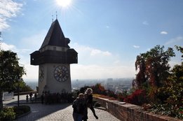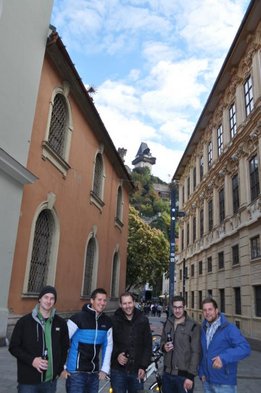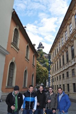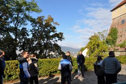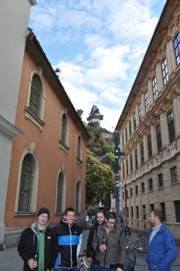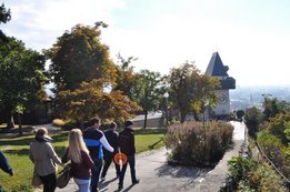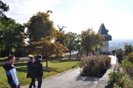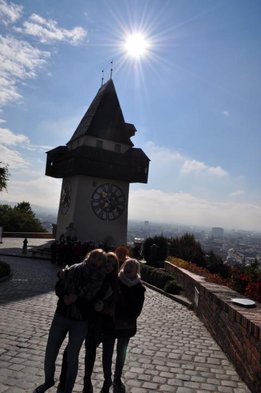 Wir starteten „pünktlich“ um 6:30Uhr unsere Reise nach Graz, wo wir uns am Steiermarkhof, dem Bildungshaus der Landwirtschaftskammer, mit einem reichhaltigen Frühstück stärkten. Anschließend erfuhren wir bei einer Führung am Grazer Schlossberg einige wissenswerte Fakten über das berühmte Wahrzeichen und die Stadt. Nach einer kurzen Shoppingpause machten wir uns auf den Weg zum wohl actionreichsten Teil unserer Lehrfahrt - der Lasertron-Halle in Graz-Puntigam. Hier war nicht nur Durchhaltevermögen, sondern auch Grips und Strategie gefragt - und in dem/der ein oder anderen wurde sogar der Killerinstinkt geweckt. Als Champion ging unser Markus Reisenegger hervor, der mit über 12000 Punkten den Rest der Truppe in den Schatten stellte. Nächster Halt: Lehrlingshaus Arnfels. Unsere Unterkunft. - Und weil wir auf Stockbetten und Gemeinschaftsduschen stehen, der perfekte Ort für uns! :D Den Abend ließen wir dann „gemütlich“ beim Weinlesefest in Gamlitz ausklingen. Der Sonntag bot uns neben wunderbaren Wetter und toller Stimmung vor allem eines: Wein. Im Anhänger von Traktorfahrer Hans ging‘s über die Weinberge von Großklein bzw. Deutschlandsberg. Unter anderem besichtigten wir die größte Weinrebe der Welt! Unser lieber Hans hatte auch sichtlich Spaß mit uns und spielte uns sogar ein paar Stücke auf seiner Harmonika J Die letzte Station unserer Traktorfahrt war der Buschenschank Dreisiebner, wo uns der Hausherr Hannes seine besten Weine präsentierte. Herzlichen Dank an unseren Busfahrer Markus (alias. Julian), der uns sicher wieder nachhause brachte. Alles in allem hatten wir also wieder ein lehrreiches, lustiges und vor allem „üppiges“ Wochenende! PS.: Fotos ©by el Grabbo