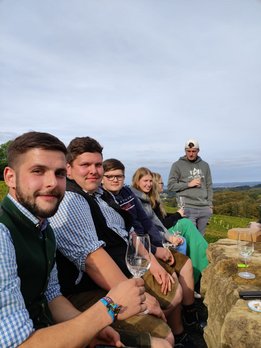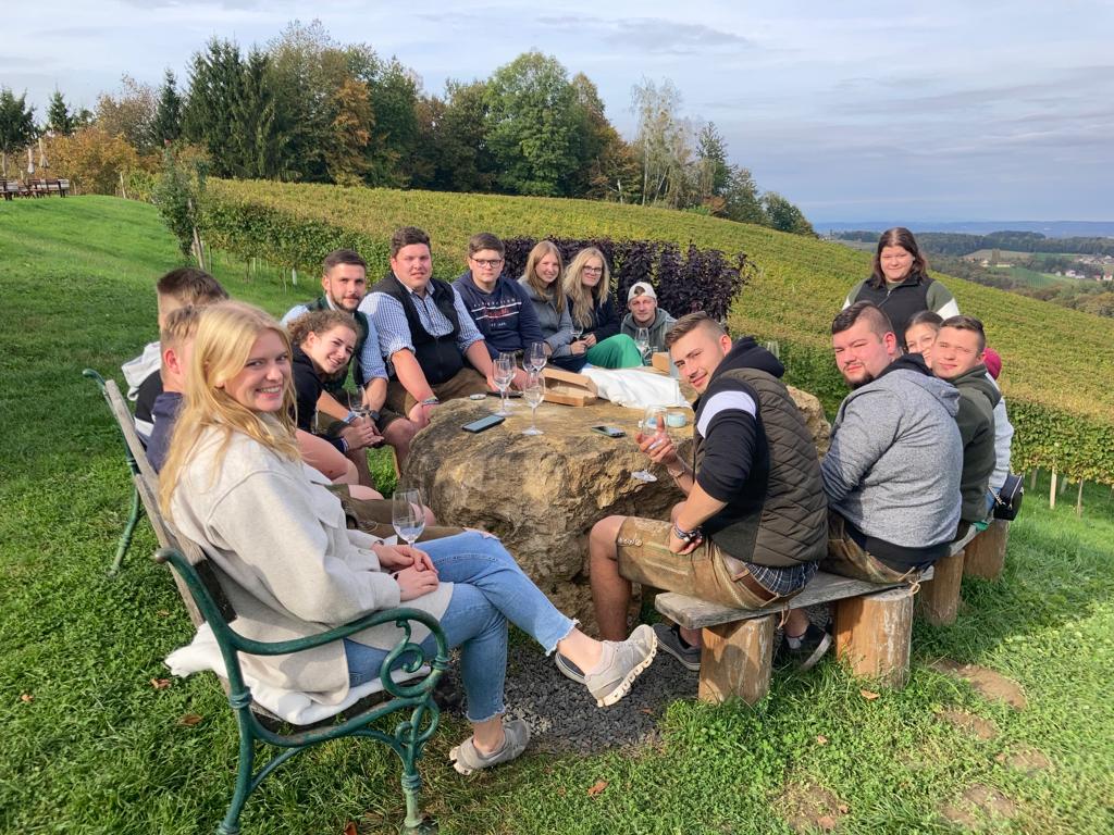 Am nächsten Morgen wurde bei einem gemütlichen Frühstück die Lage besprochen. Woraufhin wir den Tag beim Gamlitzer Weinlesefest starteten. Am frühen Nachmittag wurden wir von einem Traktor abgeholt der mit uns durch die zauberhaften Weinstraßen von Gamlitz tuckerte. Zwischendurch machten wir einen Halt bei einer Buschenschank wo wir sämtliche Sorten Wein bei bester Aussicht probieren durften. Vor der Heimreise stoppten wir noch bei der Bierbrauerei in Leutschach wo wir mit einer Verkostung und einer leckeren Jause verwöhnt wurden.