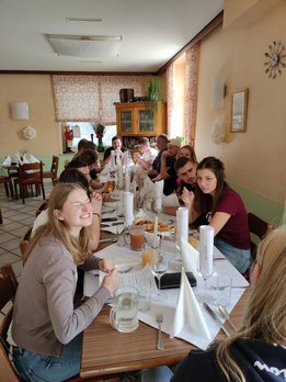 Nach diesem Spaß ging es für uns weiter ins Quartier, wo wir rasch unser Zimmer bezogen und uns frisch für das Gamlitzer Weinlesefest machten. Den restlichen Abend haben wir bei guter Speisen und Unterhaltung ausklingen. lassen.